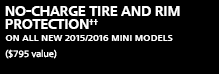 Vehicles not exactly as shown. Models shown in advertisement include 2016 MINI Cooper 3 door/2015 MINI Cooper 5 door/2015 MINI Cooper S ALL4 Countryman with 6-speed manual transmission. Starting base model MSRP of $21,490/$22,240/$29,950. Starting MSRP does not include Freight & PDI (up to $2,495), retailer administration fee (up to $599), vehicle registration fees ($55), tire tax ($20) and A/C fee ($100). *Lease and finance offers from 0.9% are based on select new 2015 models. 1% rate reduction on all 2015 and 2016 models excluding the 2015 MINI Cooper S/ John Cooper Works ALL4 Countryman models. Available only through MINI Financial Services Canada on approved credit (OAC). **$5,000 CAD cash rebate is applicable to cash purchases on 2015 MINI Cooper S/ John Cooper Works Coupé and 2015 MINI Cooper S/John Cooper Works Roadster models only. ††Premium Appearance Protection Package, valued at $800, is available for a 48 month term on 2015 models only. No substitutions, no cash value. Offer only applicable to vehicles in stock at MINI Retailers. Trade between MINI Retailers may be necessary. Tire and Rim Protection Package, valued at $795 is available for a 12 month term on new 2015 and 2016 models Leased or Financed through MINI Financial Services only. No substitutions, no cash value. Offer only applicable to vehicles in stock at MINI Retailers. Trade between MINI Retailers may be necessary. Offer ends November 30, 2015.